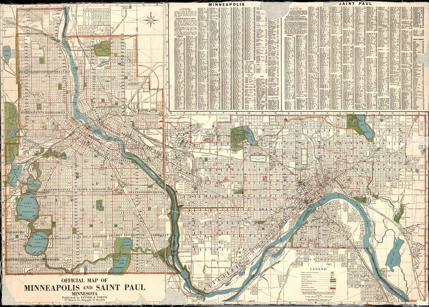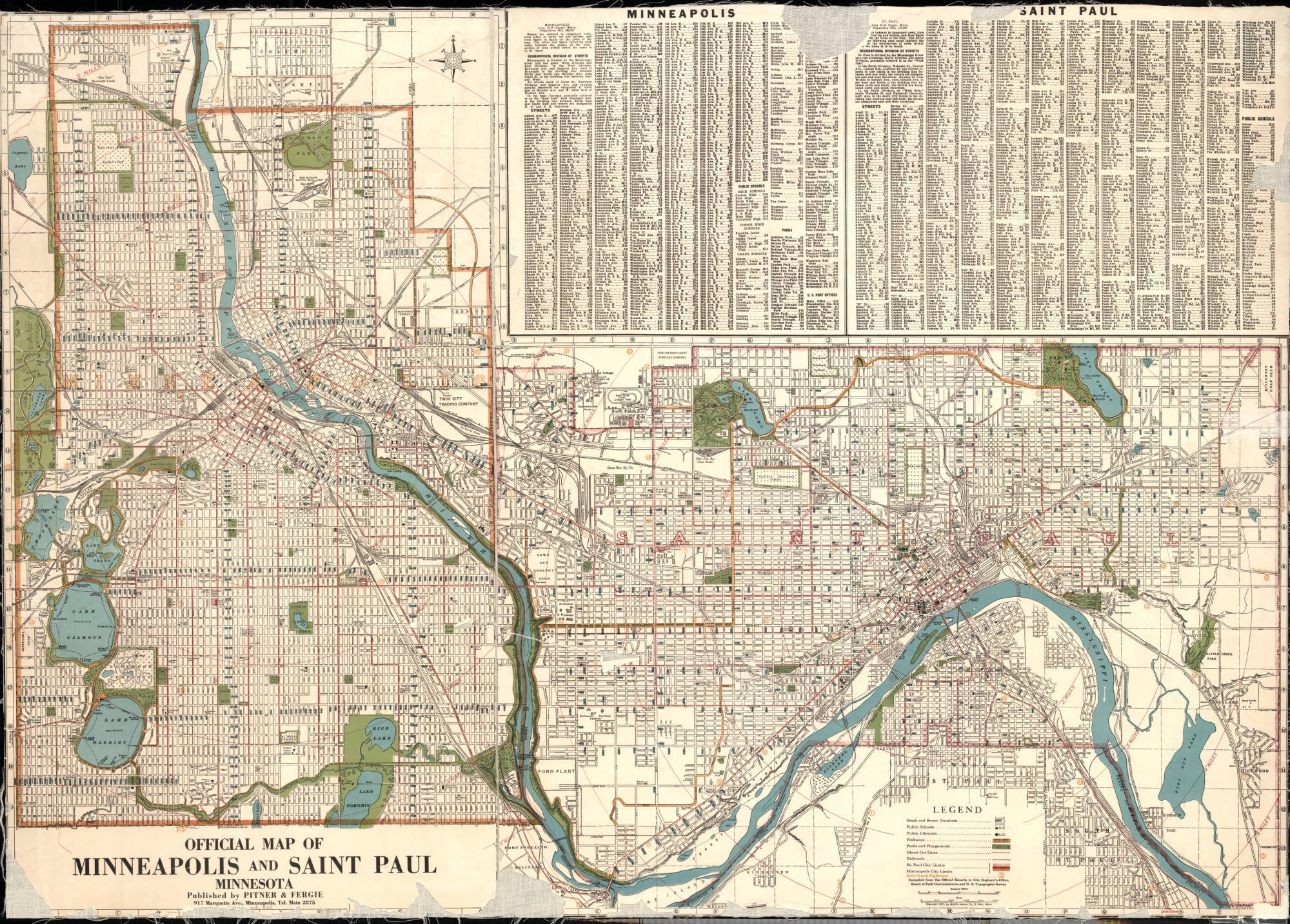 Header image is an official city map of Minneapolis and St. Paul (1923).