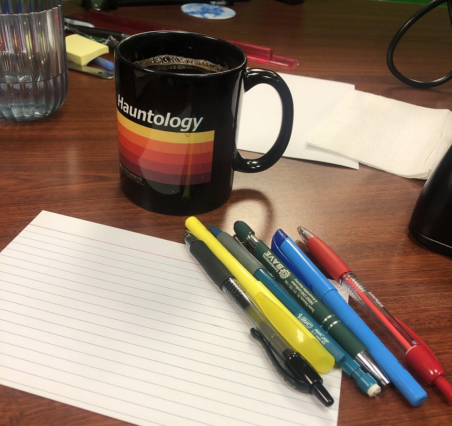 The rules. If I’m stuck at work all day, then drawing will have to be done on company time. In that spirit, I can only draw with and on items found in an office. Pencils. Pens. Markers. Paper from the copier or index cards in the cabinet.