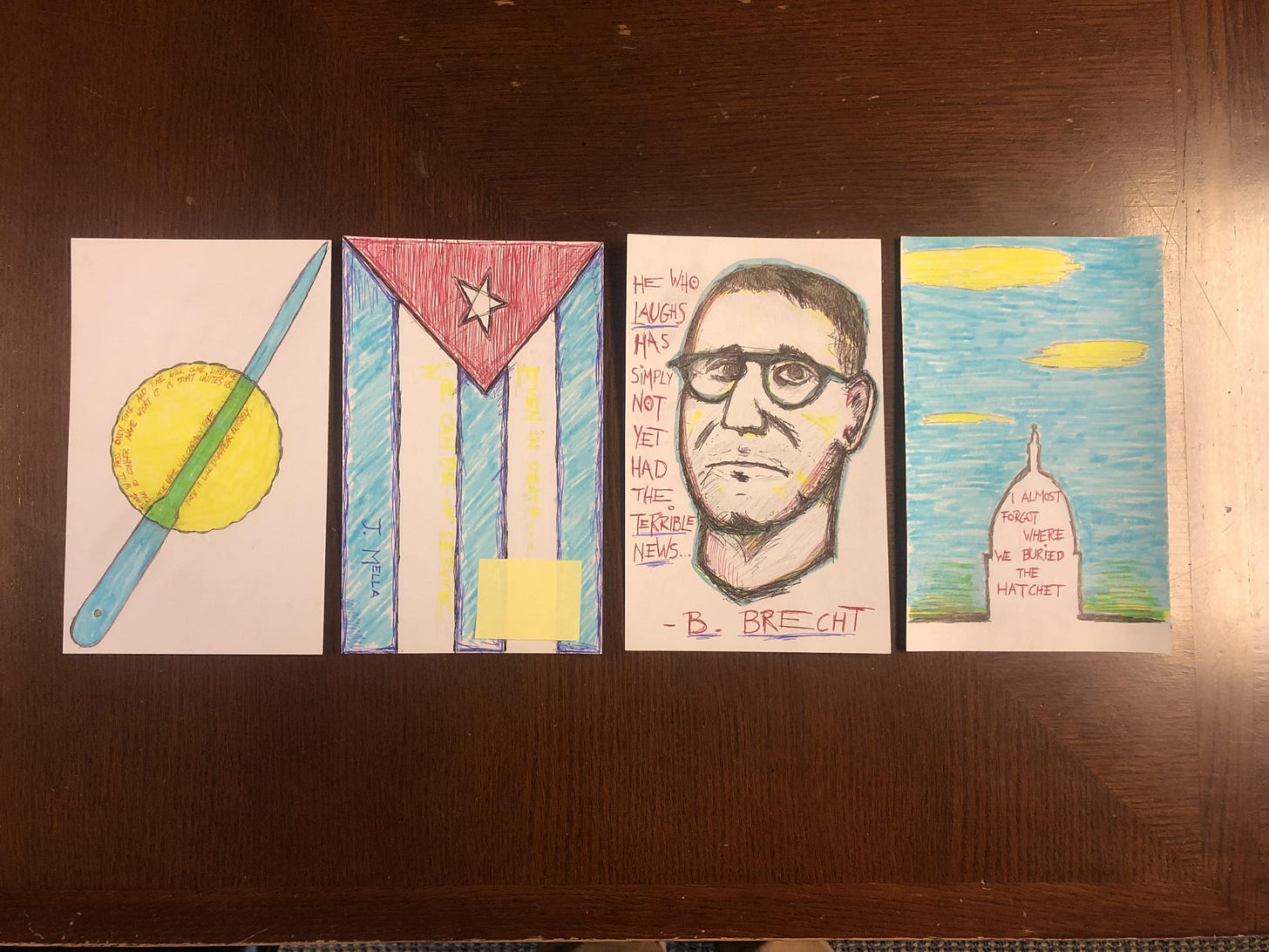 The quote, deliberately faint, is from Julio Mella, the slain Cuban communist leader: “Even in death, we can be of service.” I’m clearly looking for a morose kind of hope.