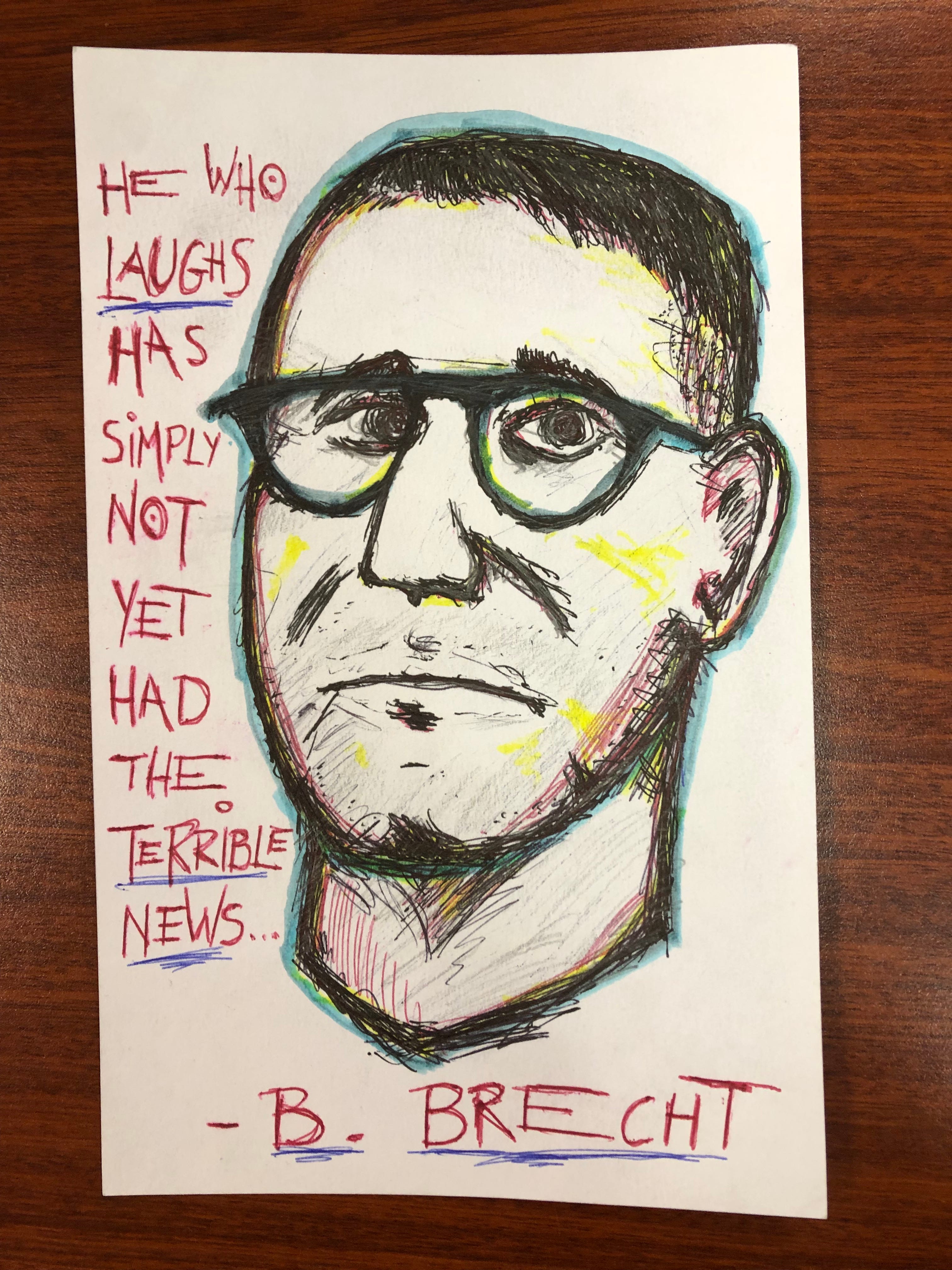 Third picture. Bertolt Brecht, drawn on his birthday (February 10) and one of his memorable (however bleak) quips. There are many others I could have chosen, though given the tone of the above, it’s probably understandable why I landed on this one.